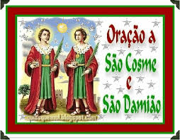 Cosme e Damião, luzeiros espíritos da corte de Oxalá, amados benfeitores, queridos guias, nós vos imploramos a vossa proteção, força, saúde e resignação para que possamos cumprir com os desígnios de Pai. Dai-nos sempre os fluidos de paz, amor alegria e felicidade que vos são peculiares. Curai nossos males, fortalecendo nossos corpos materiais, proporcionando aos nossos espíritos as satisfações que lhes sejam agradáveis. Protegei-nos e a nossos familiares; protegei também, todas as criancinhas, para que tenham, a cada dia, uma vida melhor, sob o prisma material. Que vossos fluidos sacrossan-tos, recaiam sobre nossas cabeças, é o pedido que humildemente vos fazemos.
