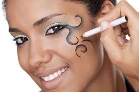 *Combine a maquiagem dos olhos com a cor dos seus;use produtos anti-alérgicos e,como é Carnaval,abuse das cores fortes, das plumas(elas são vendidas já pintadas e com uma cola especial para colagem) e do delineador.Se quiser,use longos cílios postiços.